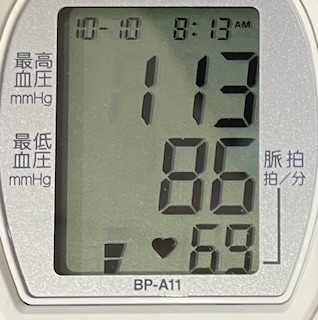 1909日目(悪くない) 日記 Twitter Facebook はてブ Pocket LINE コピー 2025.10.10 出張三日目ですが、今回は会食予定がないので、飲みすぎず、睡眠もしっかりとれていて、身体に無理がないです。これはこれでよいなぁ。今夜も無理に会食などいれず、穏やかに過ごそう。 昨夜も体重を測りませんでした。失念してしまっています。 今朝の血圧は以下。 鼻のムズムズ度は、20/100くらい。若干、ムズムズしますが、若干です。 今日も出社です。 ↓ をポチッとしていただけると嬉しいです。ありがとうございます。